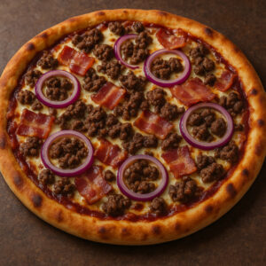 Die New York Pizza von Smiley’s Pizza kombiniert rauchige „BARBECUE SAUCE“, saftiges „HACKFLEISCH“, knusprigen „BACON“ und aromatische „ROTE ZWIEBELN“ mit cremigem „MOZZARELLA“. 🍕