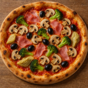 Die Quattro Stagioni Pizza von Smiley’s Pizza kombiniert herzhaften „SCHINKEN“, frische „CHAMPIGNONS“, aromatische „OLIVEN“, zarte „ARTISCHOCKEN“ und knackigen „BROKKOLI“ auf „TOMATENSAUCE“ und „MOZZARELLA“. 🇮🇹