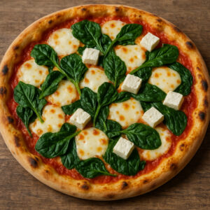 Die Atena Pizza von Smiley’s Pizza kombiniert frischen „SPINAT“ und aromatischen „PATROS-KÄSE“ auf cremigem „MOZZARELLA“ und fruchtiger „TOMATENSAUCE“. 🇬🇷